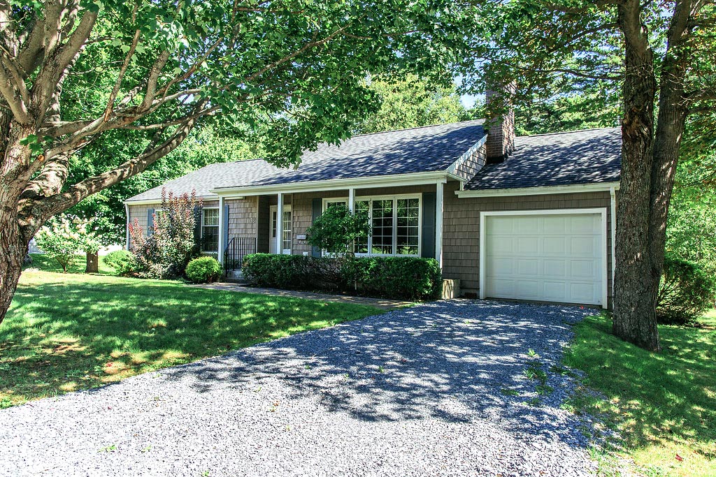 At the end of a pine tree lined driveway is this charming waterfront property that used to be a dairy farm. With about 350 feet of water frontage, 3.5 acres of land – much of it landscaped, lush and full of apple trees has this property incredibly unique.