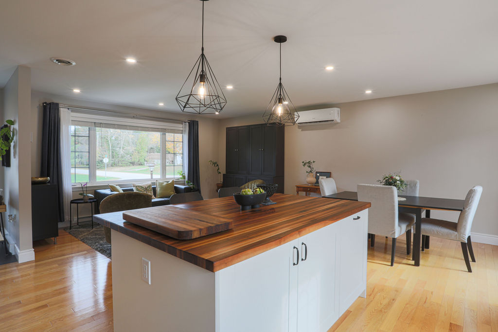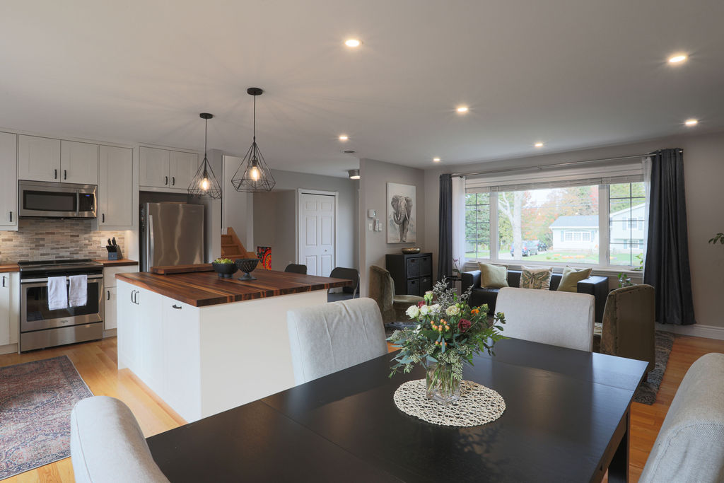 | This lovely Quispamsis neighbourhood holds some of the most family frequented streets along its sidewalks where it is routine to pass by mid-morning joggers, dog walkers and daily bus stop drop-offs. This versatile home with a detached double car garage blends to its surroundings by accommodating a wide variety of lifestyles with 3 bedrooms over 4 levels of updated living space. Enter to an impressively open main level, where a wall was removed to accommodate a new kitchen layout including a 4x6 butcher block island with bar seating, clean white cabinetry, a built-in wine rack, undermount lighting and updated light fixtures. Both bathrooms have been completely redone, now bright and modern with added fans and pot lights among other updates. After dinner unwind on the lower level in comfort, curled around a new Pacific Energy woodstove that is efficiently operated alongside a new Gree heat pump, added insulation, new air exchanger and hardwired LAN on all levels. The basement holds a large room currently set up as a gym and a spare bedroom (non-egress window) with a sizeable amount of closet space. To top the list of updates here, there has been new flooring added throughout, the driveway freshly paved and seasonal landscaping completed. This home is a dependable choice for those seeking a comfortable home-base with convenience in location being nestled amid central Quispamsis and its many handy amenities. | ||||