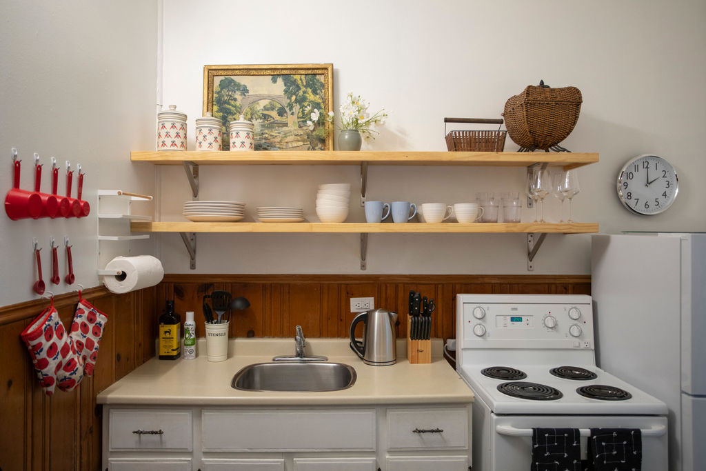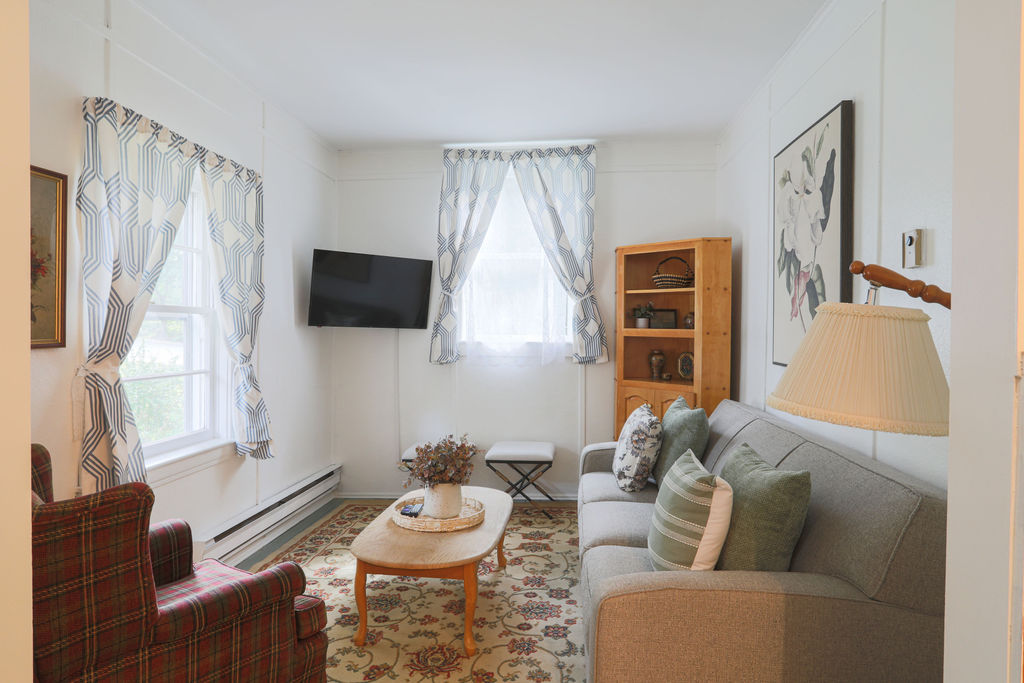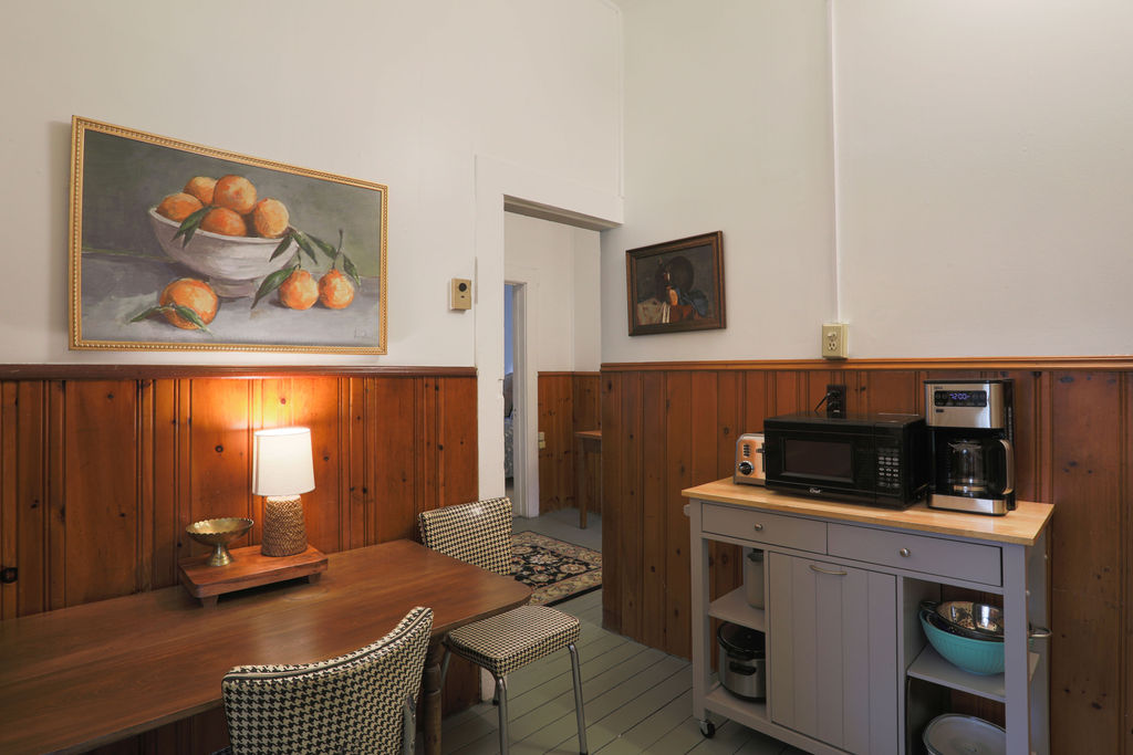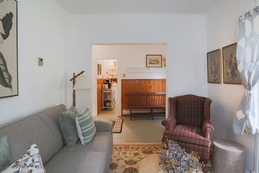 This quaint and dainty short-term rental unit has one well-sized bedroom with a walk-in closet, one full bathroom with laundry and a location inside central Rothesay that is tucked between schools, parks, trails, markets, cafes, bakeries, tennis club, golf club and yacht club - to name only a few things we love about this scenic areas offerings. All utilities (heat, power, internet, cable) are included here alongside private parking, snow removal, garden, and lawn maintenance. Enter through the patio area into a thoughtful foyer with natural pine wall panelling, a cozy living area and a fully equipped kitchen. This homey unit comes furnished with all essentials including a king size bed, fresh linens, pillows, towels, kitchen utensils, appliances, living room and dining furniture. Being tucked around the rear, the coachman’s apartment has privacy in its placement, convenience in its walkability, and a sureness that you will have comfort throughout your stay on one of Rothesay’s most loved side streets.