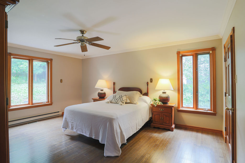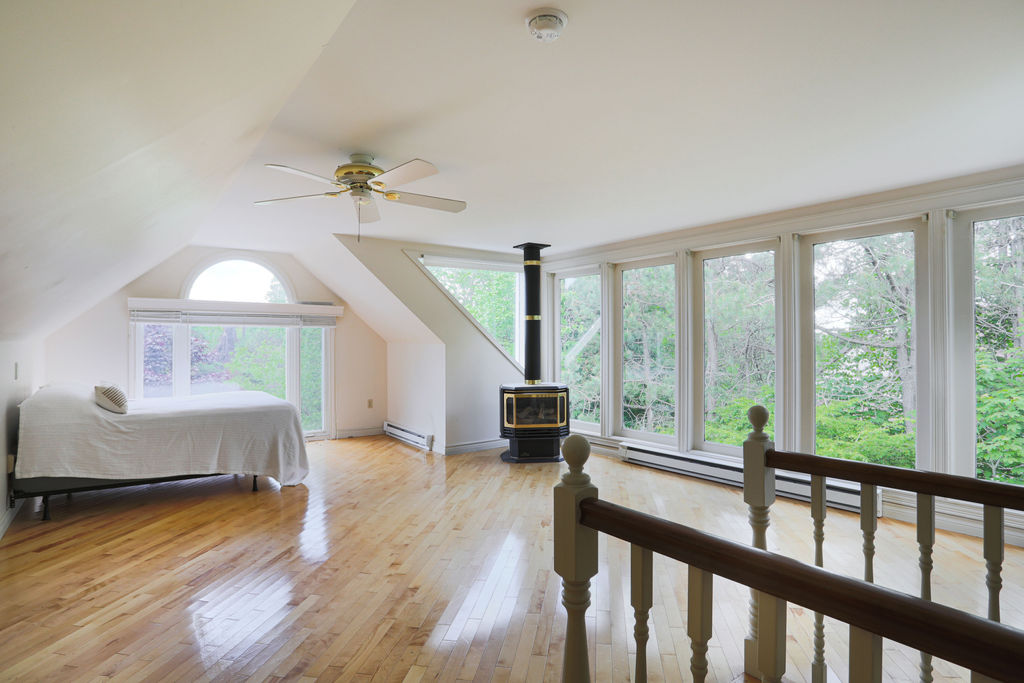 This unicorn of a home with its steep pitched roof, painted cedar shakes, bountiful treed lot hosting all the privacy, interesting sight lines, sprawling length, loft above the garage with its own staircase - there is no other home like this in a more prime Rothesay location. With two front entrances, one that leads you to a high and wide entryway with an exposed main staircase showcasing the upstairs level and one to a hardworking mudroom, laundry room area at the other end of the home, next to the double car garage. The principle bedroom is on the main level with double closets and an updated ensuite bathroom. A casual den, living room with a two-sided wood burning fireplace that looks to the formal dining room all lead to a circular non-open style floorplan to a spacious kitchen topped by a sky light. Upstairs are 3 spacious bedrooms, one with its own powder room attached in addition to a connecting room which could be used as a nursery or potential walk-in closet. The storage options are unlimited from a large unfinished basement connected to the attached garage and many accessible attic areas - you will have no problem storing holiday decorations. This home is a contrasted blend of grand while being cozy, welcoming while being retreated, long while being storied, nostalgic while being ahead of its time. Thoughtfully placed in an area with hiking trails, walkability, access to the river, next to a golf course - there is a fulfilling lifestyle to be enjoyed here. |