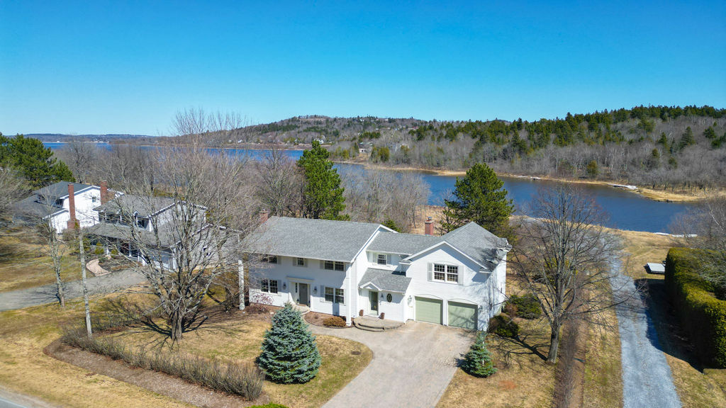 Framed by sunrise views over the Kennebecasis River, this clean, classic waterfront home offers over 3,600 square feet of thoughtful living - where timeless style meets modern comfort along a prized stretch of Rothesay’s waterfront community. Set on a calmer, sheltered stretch of river, this property enjoys less wind, ideal for year-round comfort and winter activities. Recently updated, the home features a cement board exterior in a creamy, tone-on-tone palette, a new roof (2020), and an interlocking driveway. Inside, classic architecture blends seamlessly with elevated finishes. The kitchen features inset white cabinetry, a farmhouse apron sink, chrome bridge faucet, pot filler, and panelled details. French doors lead to a waterside deck - perfect for entertaining or quiet mornings. The main living room is anchored by a wood-burning fireplace with custom built-ins, while a front sitting room with a second fireplace offers an intimate retreat. Upstairs, two staircases lead to four bedrooms and two bathrooms, including a spacious owner’s suite with a custom walk-in closet and built-in make-up station, plus an impressive bonus great room above the garage with a fireplace, built-ins, and kitchenette. Set in the beloved K-Park neighbourhood, close to a boat launch, sandy beach, outdoor skating rink, hospital, and within walking distance to two schools, this is an offering where craftsmanship, comfort, and waterfront come together beautifully.