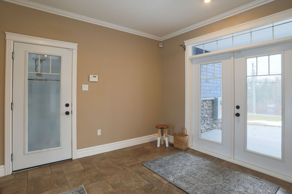 | Privately set on a flat 1.9 acre lot, this exceptional 5-bedroom home offers a thoughtful balance of space, convenience, and long-term durability just beyond the city. A long, paved driveway leads you to this home with 2 covered porches and in-ground saltwater pool, complemented by impressive garage spaces offering rare flexibility for personal or professional use. Inside, a functional mudroom opens to the kitchen with bar-top seating, double ovens and a walk-in pantry. Flowing into the living room, floor-to-ceiling windows and cathedral ceilings flood the space with natural light. 2 bedrooms are on the main level, while the upper floor offers 3 additional bedrooms and a laundry room. The primary offers a whirlpool tub in the ensuite and a private balcony. The finished basement extends the living space with a large family room or gym, home theatre and storage. The attached 3-car garage is complete with epoxy floors, a bonus room and wet bar, while tucked at the rear of the property, a separate oversized 3-bay garage adds further flexibility with 1,700 sqft. It is heavily insulated and can hold an RV camper or boat trailer. There is a geothermal heat system in the house, a fully automated Generac and security system providing unwavering comfort and peace of mind. Close to the highway, this home is 10 minutes from a boat launch, 15 to Sussex and 30 to Saint John. Close enough for an easy commute, this home is ready to create lasting memories in comfort, style and tranquility. | ||||