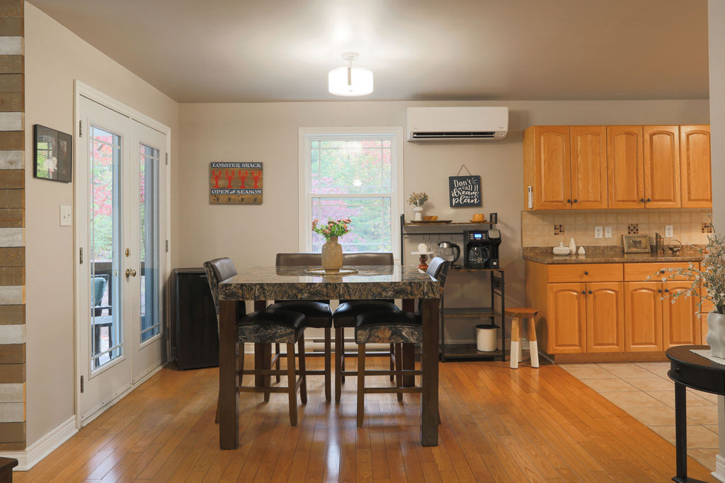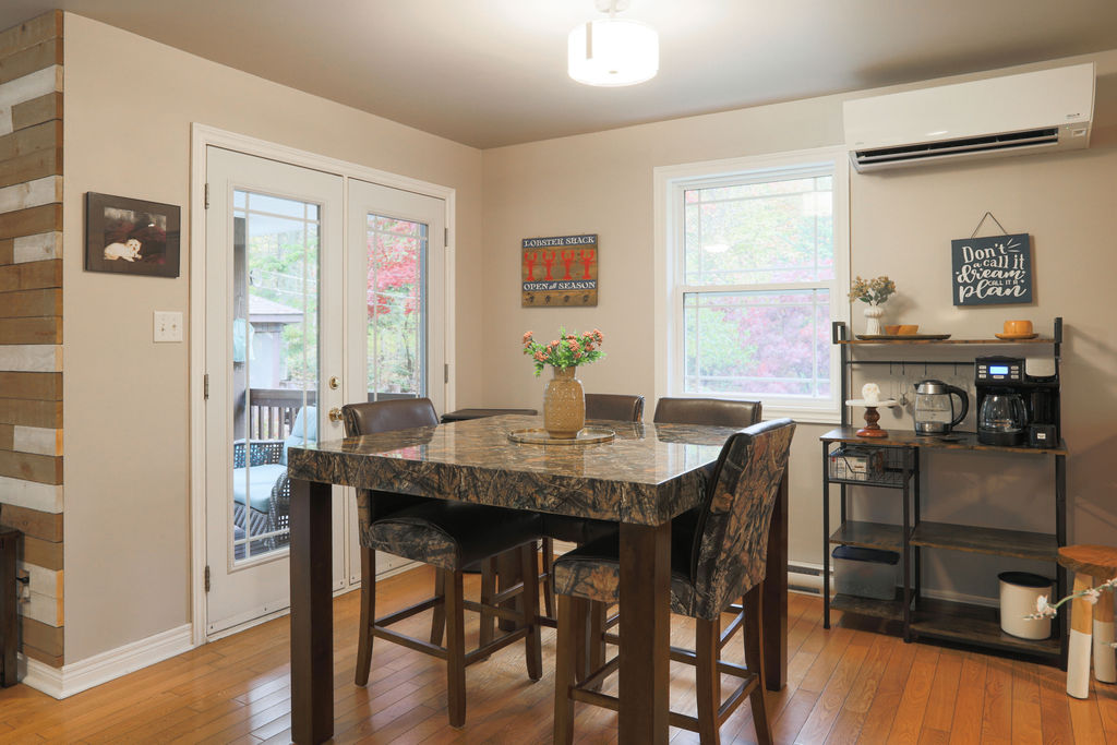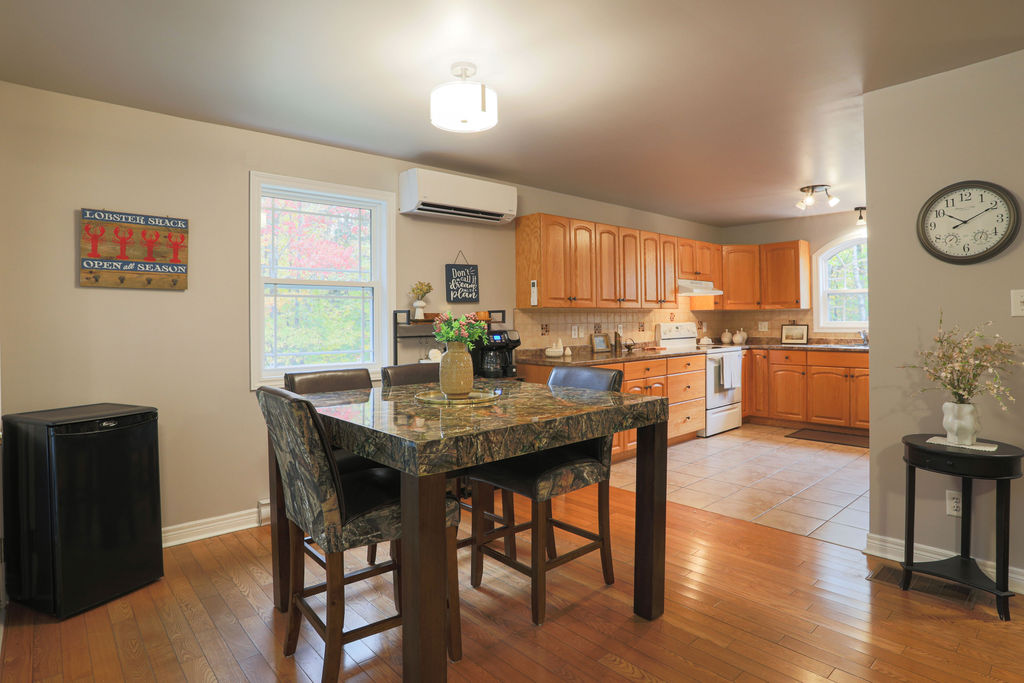 Set on a beautifully landscaped 1.5-acre lot with mature trees, this well-cared-for 3-bedroom bungalow offers both privacy and practicality in a welcoming East Saint John neighbourhood. Just 10 minutes from the city’s main shopping area and a short drive to the Saint John Airport, you’ll enjoy peaceful living with everything needed close by. Inside, the open-concept design connects the kitchen, dining, and living areas, making it easy to cook, gather, and relax together. Step out onto the covered back deck - perfect for quiet evenings or casual get-togethers with friends and family. All three bedrooms are on the main level and offer plenty of closet space. A convenient laundry and mudroom just off the garage make everyday living even easier. Downstairs, the finished lower level provides extra space for everyone, featuring a cozy family room with a wood stove, a full bathroom with a soaker tub, and a custom bar area for entertaining. Outside, manicured gardens and tall trees create a private, park-like setting. Whether you’re enjoying your morning coffee, hosting a barbecue, or reading in the gazebo, this yard is for relaxing and enjoying the outdoors. The home is nestled on a lovely, private lot offering a peaceful retreat. With an attached two-car garage, two storage sheds, and a quiet cul-de-sac location on Saint John’s East Side, this property offers comfort, convenience, and room to enjoy life - just minutes from shops, restaurants, amenities, and the Saint John Airport.