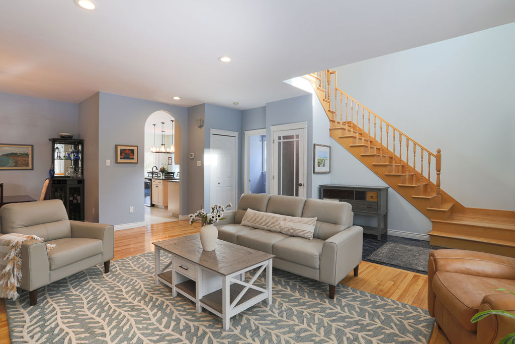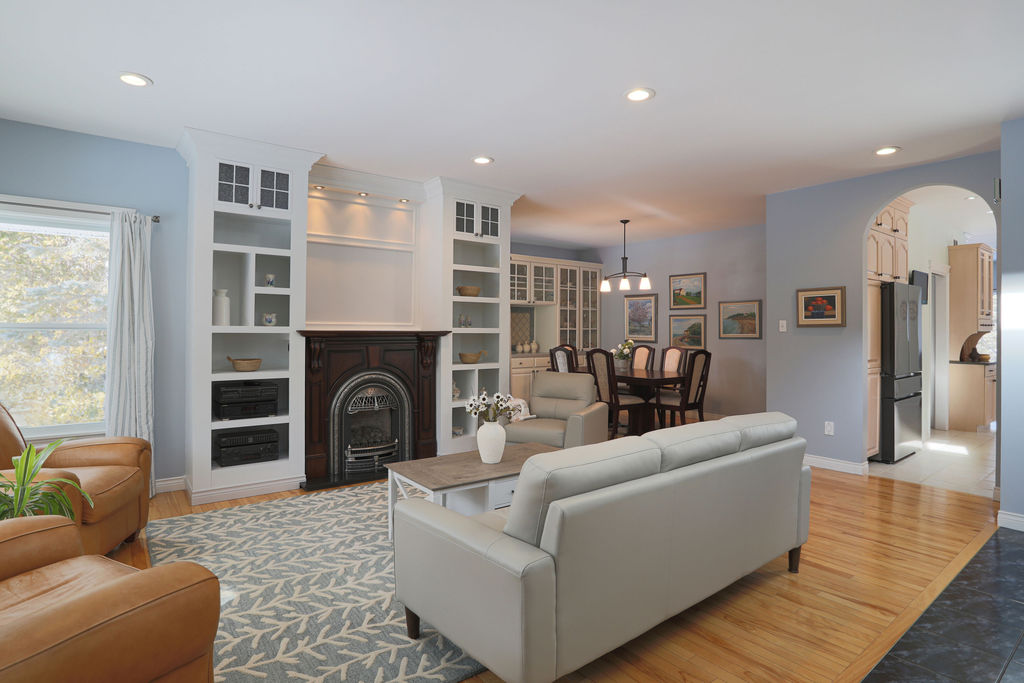 Immaculate hardly begins to describe this remarkable 2-storey central and private Rothesay home. Lovingly maintained by its original owner, the moment you step inside, there’s an immediate sense of calm - everything is exactly where it should be. Approached via a winding, lane-like driveway unique to this area, the main level welcomes you with 9’ ceilings, in-floor heat, and elegant arched entrances. Light fills the living and dining spaces, where custom built-ins frame everyday moments and special gatherings. The hearty family and TV room sits just off the kitchen, with generous built-ins and a thoughtfully integrated home office desk - perfect for movie nights, homework, or quiet workdays. The mudroom, tucked-off the garage, includes washer, dryer, and sink, making after-school and sports days seamless. Up the winding staircase are 3 inviting bedrooms, including a primary suite with a spacious ensuite featuring a deep soaker tub, separate shower, and private toilet room. The partially finished basement adds personality, including a raised dog bath for tidy furry family members. Ample natural light highlights the home’s spotless condition and timeless finishes. Set in an outstanding Rothesay location, the home connects directly to Arthur Miller grass and turf fields, with a pickleball court, wine bar, café, several schools, and playgrounds just steps away. This one-owner home in a prized location is where the calm, comfort, and rhythms of daily life come together.